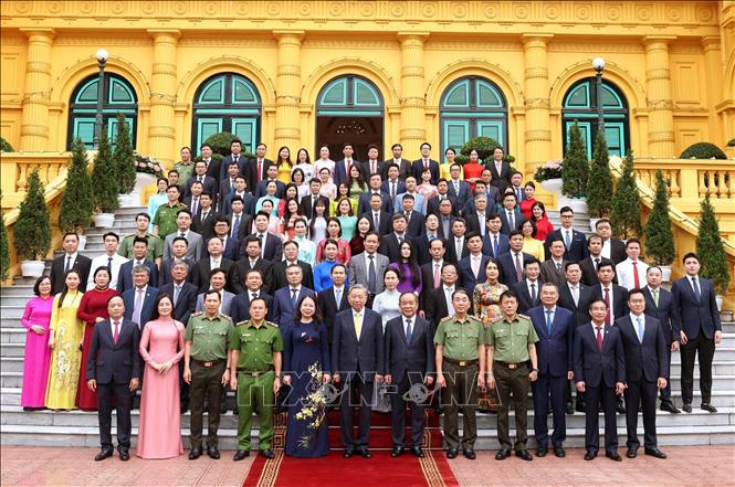 Phát biểu tại buổi gặp mặt, Chủ tịch nước Tô Lâm trân trọng cảm ơn tình cảm, sự đón tiếp trọng thị, thân tình của Phó Chủ tịch nước; lãnh đạo, cán bộ, nhân viên Văn phòng Chủ tịch nước. Chủ tịch nước Tô Lâm khẳng định, trong mọi thời điểm, Chủ tịch nước qua các nhiệm kỳ đều đã rất nỗ lực để thực hiện đầy đủ, hiệu quả nhiệm vụ, quyền hạn theo quy định của Hiến pháp. Kết quả công tác qua các nhiệm kỳ của Chủ tịch nước đã góp phần quan trọng cùng toàn Đảng, toàn dân và toàn quân phát huy truyền thống yêu nước, ý chí, sức mạnh đại đoàn kết toàn dân tộc, tăng cường xây dựng, chỉnh đốn Đảng, hệ thống chính trị trong sạch, vững mạnh; đẩy mạnh toàn diện và đồng bộ công cuộc Đổi mới, phát triển kinh tế-xã hội, nâng cao đời sống vật chất và tinh thần của nhân dân; kiên quyết đấu tranh phòng, chống tham nhũng, tiêu cực; củng cố, tăng cường tiềm lực quốc phòng, an ninh, bảo vệ vững chắc độc lập, chủ quyền, thống nhất, toàn vẹn lãnh thổ, chủ quyền biển đảo thiêng liêng của Tổ quốc. Đồng thời, thúc đẩy quan hệ đối ngoại, hội nhập quốc tế ngày càng sâu rộng, nâng cao vị thế của Việt Nam trong khu vực và trên thế giới.