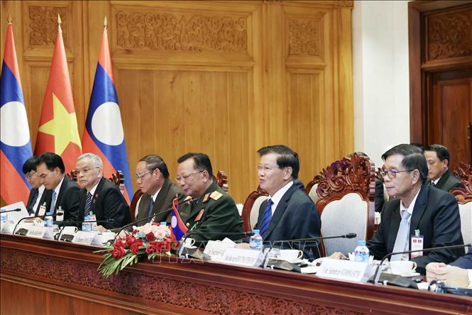 Sau khi thông báo cho nhau về tình hình kinh tế-xã hội tại mỗi nước, hai nhà lãnh đạo bày tỏ vui mừng về sự phát triển tốt đẹp của mối quan hệ hữu nghị vĩ đại, đoàn kết đặc biệt và hợp tác toàn diện giữa hai nước thời gian qua. Hai bên tiếp tục thường xuyên duy trì trao đổi đoàn và tiếp xúc cấp cao, phát huy hiệu quả các cơ chế hợp tác song phương quan trọng, qua đó giúp tiếp tục duy trì và phát huy quan hệ chính trị gắn bó, tin cậy ở mức cao nhất. Hợp tác quốc phòng - an ninh ngày càng chặt chẽ, hiệu quả với vai trò là trụ cột quan trọng trong quan hệ hai nước. Hợp tác kinh tế được quan tâm thúc đẩy, trong đó thương mại và đầu tư tiếp tục là điểm sáng; Việt Nam duy trì là một trong những đối tác thương mại và đầu tư hàng đầu của Lào. Đồng thời, hai bên cũng đã nỗ lực tháo gỡ dứt điểm khó khăn, vướng mắc một số dự án trọng điểm. Hợp tác trong các lĩnh vực văn hóa, xã hội, giáo dục, thể thao, giao lưu nhân dân và hợp tác giữa các địa phương, nhất là giữa các tỉnh biên giới tiếp tục được tăng cường, đem lại những lợi ích cụ thể cho người dân hai nước.
