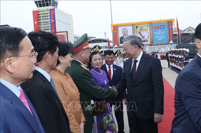 Chiều 13/7, Chủ tịch nước Tô Lâm và đoàn đại biểu cấp cao Việt Nam rời thủ đô Phnom Penh, kết thúc tốt đẹp chuyến thăm cấp Nhà nước tới Vương quốc Campuchia theo lời mời của Quốc vương Campuchia Preah Bat Samdech Preah Boromneath Norodom Sihamoni.