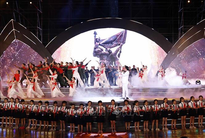Chương trình nghệ thuật đặc biệt “ Bản hùng ca bất diệt” Kỷ niệm 76 năm Ngày Thương binh, Liệt sĩ (27/7/1947 - 27/7/2023) tại Nghĩa trang Hàng Dương. Ảnh: Thống Nhất/TTXVN