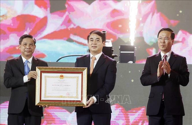 Tại Lễ kỷ niệm, Chủ tịch nước Võ Văn Thưởng đã trân trọng trao Huân chương Lao động hạng Nhất tặng Đảng bộ, chính quyền và nhân dân tỉnh Hậu Giang.
