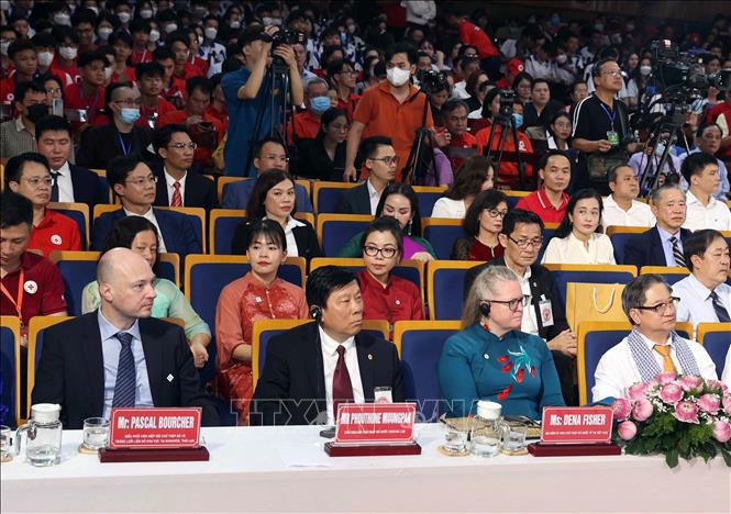 Cảm ơn Hiệp hội Chữ thập đỏ và Trăng lưỡi liềm đỏ quốc tế, Ủy ban Chữ thập đỏ quốc tế và bạn bè quốc tế đã luôn quan tâm, ủng hộ cho hoạt động nhân đạo tại Việt Nam, Chủ tịch nước Võ Văn Thưởng cho rằng, trong dòng chảy lịch sử 160 năm của Phong trào Chữ thập đỏ và Trăng lưỡi liềm đỏ quốc tế, 66 năm qua, Hội Chữ thập đỏ Việt Nam luôn là thành viên rất tích cực. Hội đã có nhiều đóng góp quan trọng chăm lo hỗ trợ về vật chất và tinh thần cho những người gặp khó khăn, nạn nhân chiến tranh, nạn nhân thiên tai, thảm họa; tham gia chăm sóc sức khỏe ban đầu cho nhân dân; vận động các tổ chức, cá nhân tham gia các hoạt động nhân đạo. Việt Nam đã, đang tích cực, chủ động tham gia các hoạt động nhân đạo ở nước ngoài với tư cách là thành viên có trách nhiệm của Liên hợp quốc và phong trào nhân đạo thế giới.