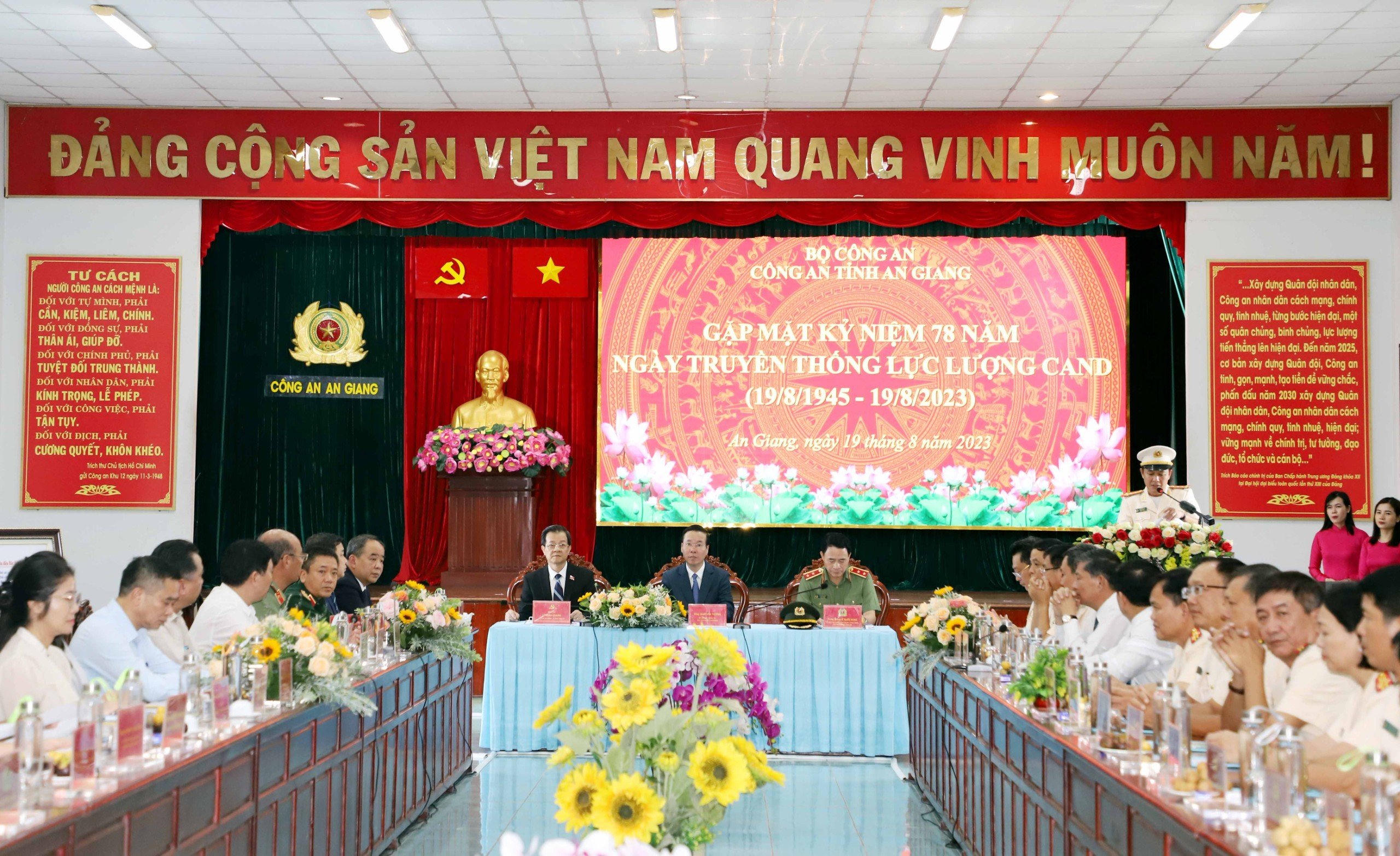 Nhân dịp kỷ niệm 78 năm Ngày truyền thống lực lượng Công an Nhân dân (CAND), thay mặt lãnh đạo Đảng, Nhà nước, Chủ tịch nước Võ Văn Thưởng biểu dương, chúc mừng những kết quả trên các mặt công tác của lực lượng CAND nói chung, Công an tỉnh An Giang nói riêng thời gian qua.