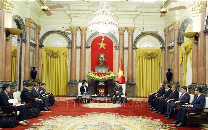 Chủ tịch nước Võ Văn Thưởng tiếp bà Viengthong Siphandon, Bí thư Trung ương Đảng, Chánh án Tòa án Nhân dân Tối cao Lào. Ảnh: Thống Nhất/TTXVN