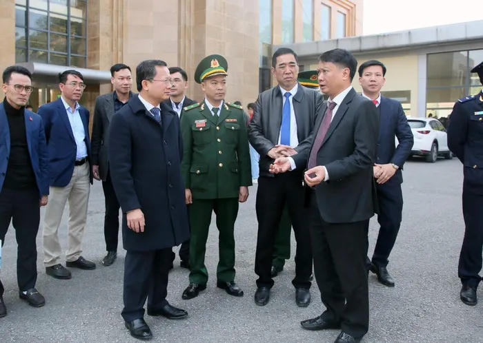 Chủ tịch UBND tỉnh Quảng Ninh kiểm tra nhanh tình hình xuất nhập khẩu đầu năm tại cửa khẩu Móng Cái. |