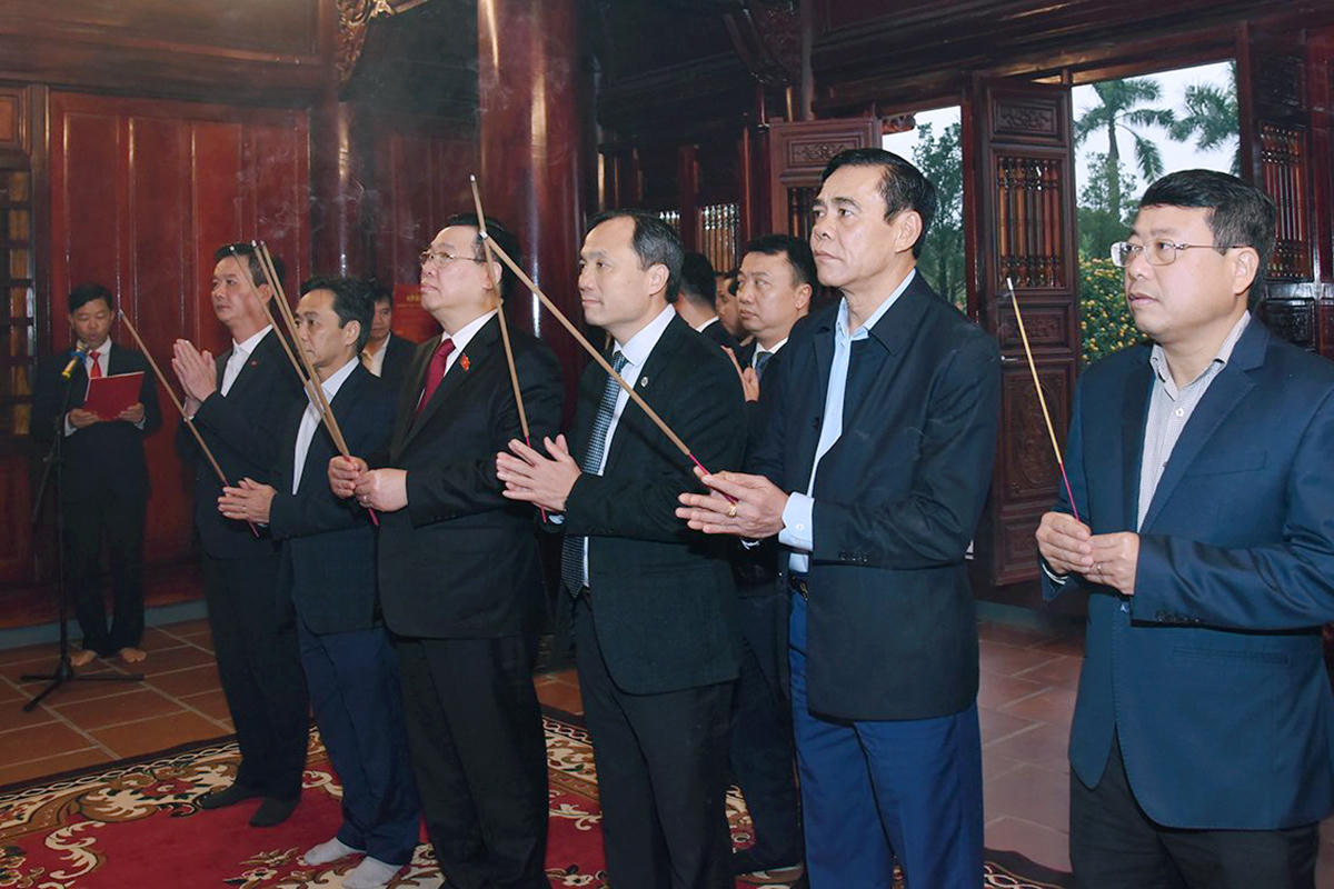 Đến dâng hương tưởng niệm Chủ tịch Hồ Chí Minh tại Khu lưu niệm Bác Hồ về thăm Hà Tĩnh, Chủ tịch Quốc hội Vương Đình Huệ và các đồng chí trong đoàn bày tỏ lòng thành kính, biết ơn vô hạn đối với công lao to lớn của Chủ tịch Hồ Chí Minh - người sáng lập và rèn luyện Đảng ta, vị lãnh tụ thiên tài của Đảng, dân tộc, của Nhân dân Việt Nam.