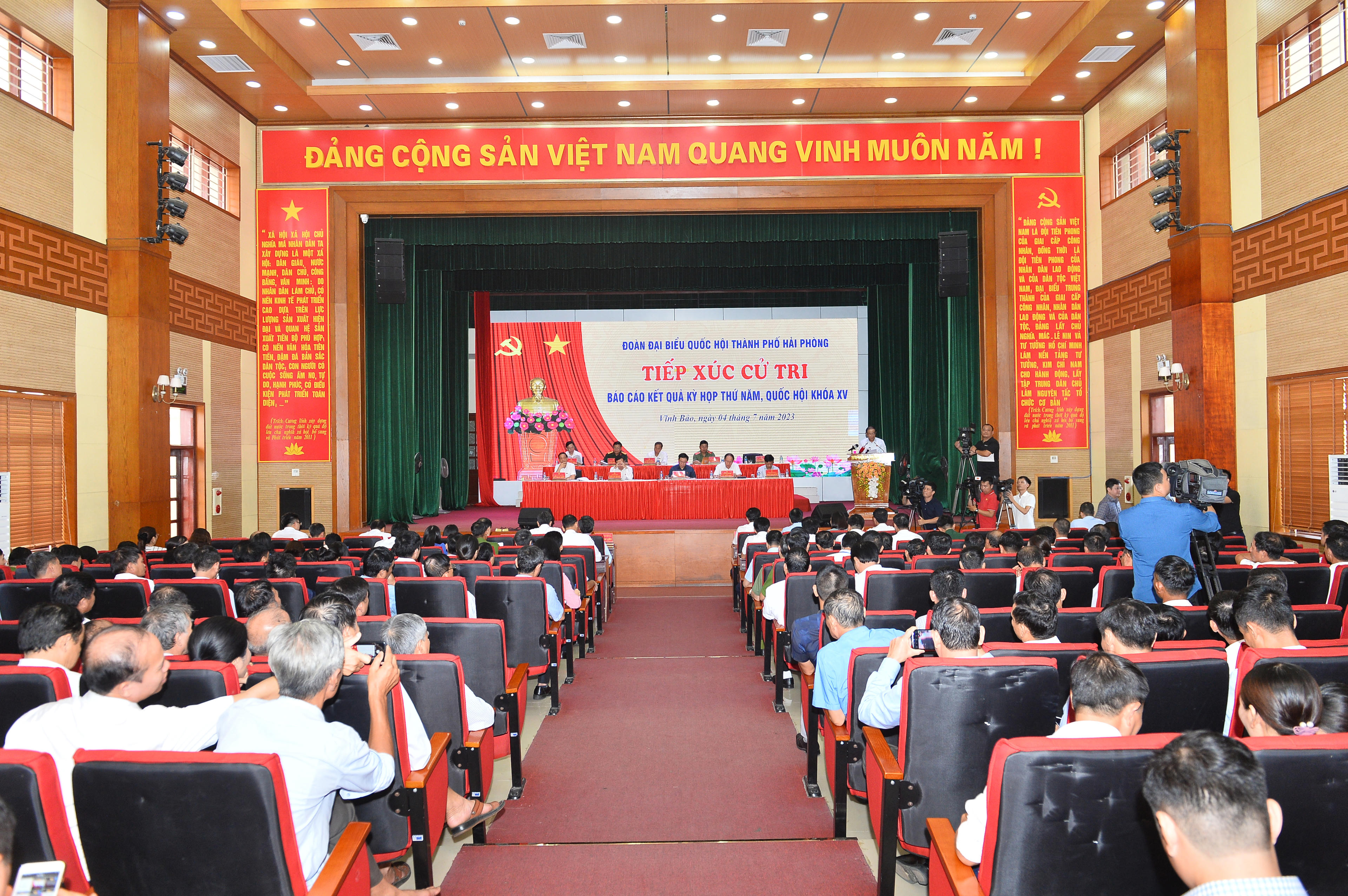Tại cuộc tiếp xúc, cử tri huyện Vĩnh Bảo bày tỏ vui mừng trước kết quả rất thành công của kỳ họp. Công tác chuẩn bị kỳ họp được chuẩn bị chu đáo, kỹ lưỡng, công phu nên các văn bản, báo cáo được trình bày có chất lượng rất cao. Số ĐBQH đăng ký thảo luận, chất vấn, tranh luận đạt kỷ lục, cho thấy không khí dân chủ trong nghị trường thể hiện rất rõ. Các đại biểu đã rất đề cao trách nhiệm, tâm huyết và thẳng thắn. Các nội dung Quốc hội lựa chọn chất vấn đúng tâm tư, nguyện vọng của cử tri, nhân dân.