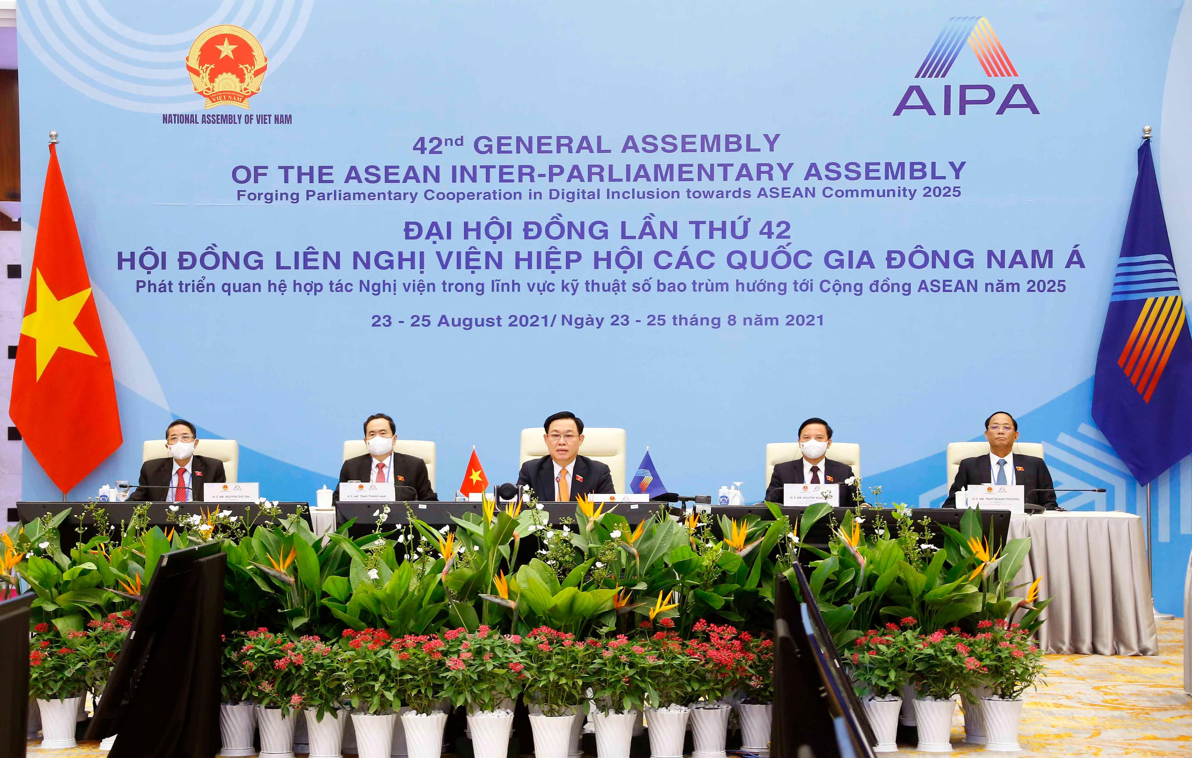 Vượt qua mọi khó khăn của đại dịch COVID-19 và hướng tới nhiều mục tiêu phát triển mới của đất nước, Chủ tịch QH Vương Đình Huệ khẳng định cam kết của QH Việt Nam tiếp tục là thành viên tích cực, chủ động và có trách nhiệm của AIPA, vì sự phát triển của ngoại giao nghị viện và quyền lợi của mọi người dân trong ASEAN.