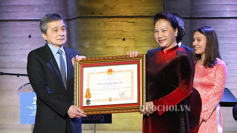 Thay mặt Đảng, Nhà nước, Chủ tịch Quốc hội Nguyễn Thị Kim Ngân trao tặng Huân chương Độc lập hạng Nhất tới Hội Người Việt Nam tại Pháp