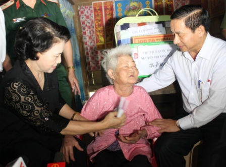Chủ tịch Quốc hội, Nguyễn Thị Kim Ngân và đoàn công tác đã trực tiếp đến gia đình động viên, thăm hỏi và trao quà cứu trợ cho bà Đậu Thị Vinh, bà Trần Thị Thanh (73 tuổi, ở xóm 6), bà Nguyễn Thị Tỉu (84 tuổi, ở xóm 6) ông Phan Văn Châu (63 tuổi, ở xóm 8), gia đình Lê Thị Lý, Nguyễn Đăng Lợi (ở xóm 7), gia đình Đào Quang Trường (ở xóm 6) đều thuộc xã Hòa Hải, huyện Hương Khê.