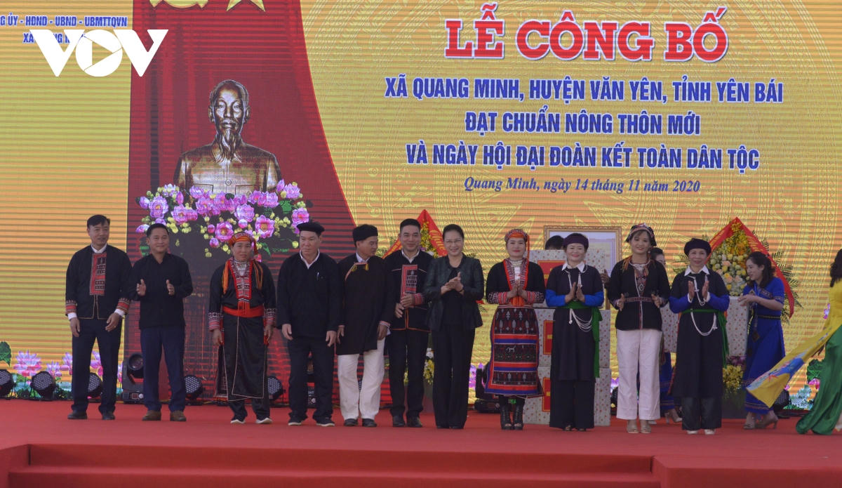 Nhân ngày truyền thống đại đoàn kết toàn dân tộc, về dự lễ công bố đạt chuẩn nông thôn mới tại xã Quang Minh, Chủ tịch Quốc hội Nguyễn Thị Kim Ngân mong Mặt trận Tổ quốc và các tổ chức đoàn thể của xã Quang Minh nói riêng và của huyện Văn Yên, của tỉnh Yên Bái nói chung tiếp tục khơi dậy sức mạnh đại đoàn kết toàn dân tộc, phát huy tinh thần thi đua sáng tạo trong mọi tầng lớp nhân dân.