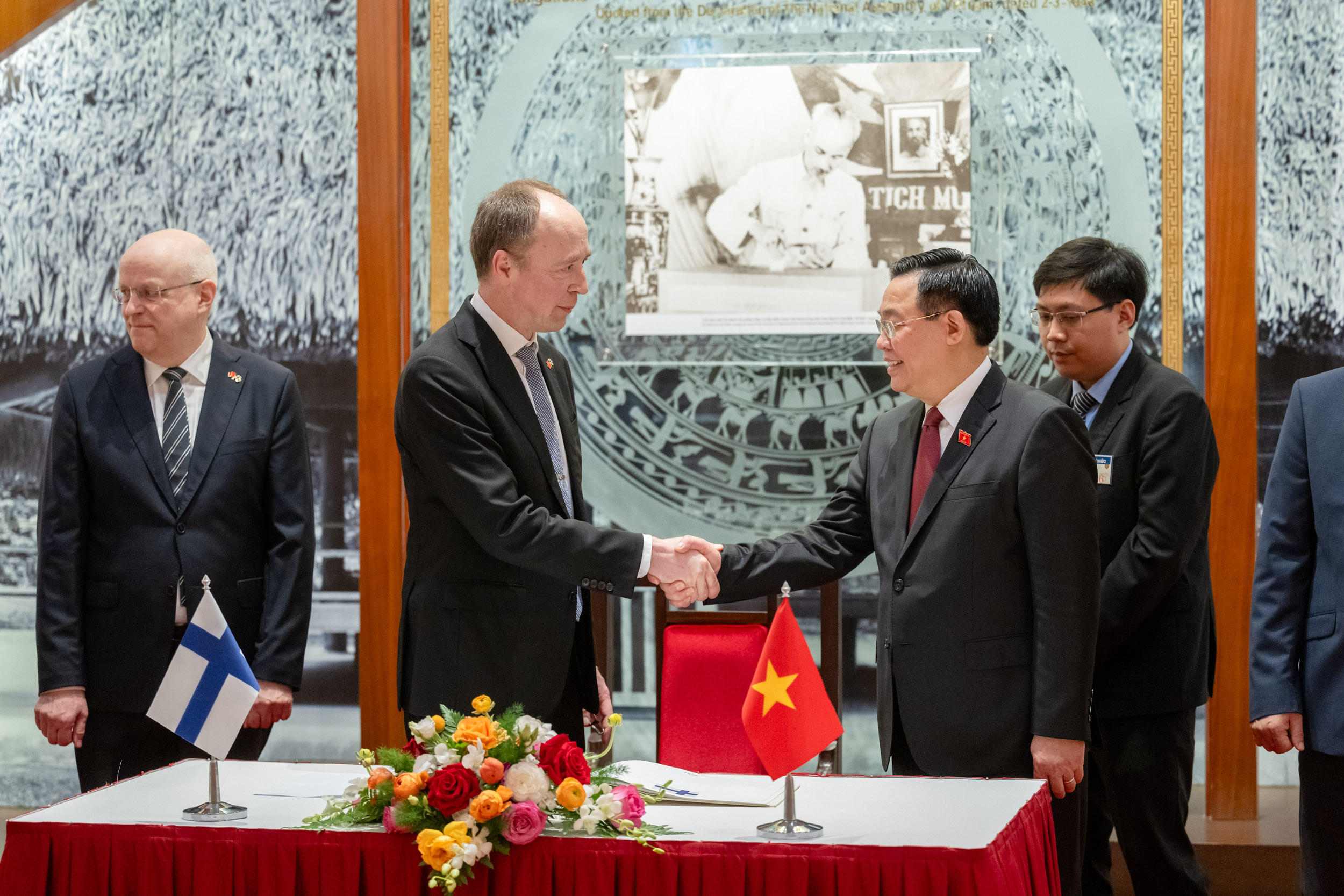 Chủ tịch Quốc hội Jussi Halla-aho bày tỏ vui mừng khi hai nước có sự chuyển dịch từ viện trợ phát triển sang hợp tác phát triển, đẩy mạnh hợp tác thương mại trên cơ sở hai bên cùng có lợi.