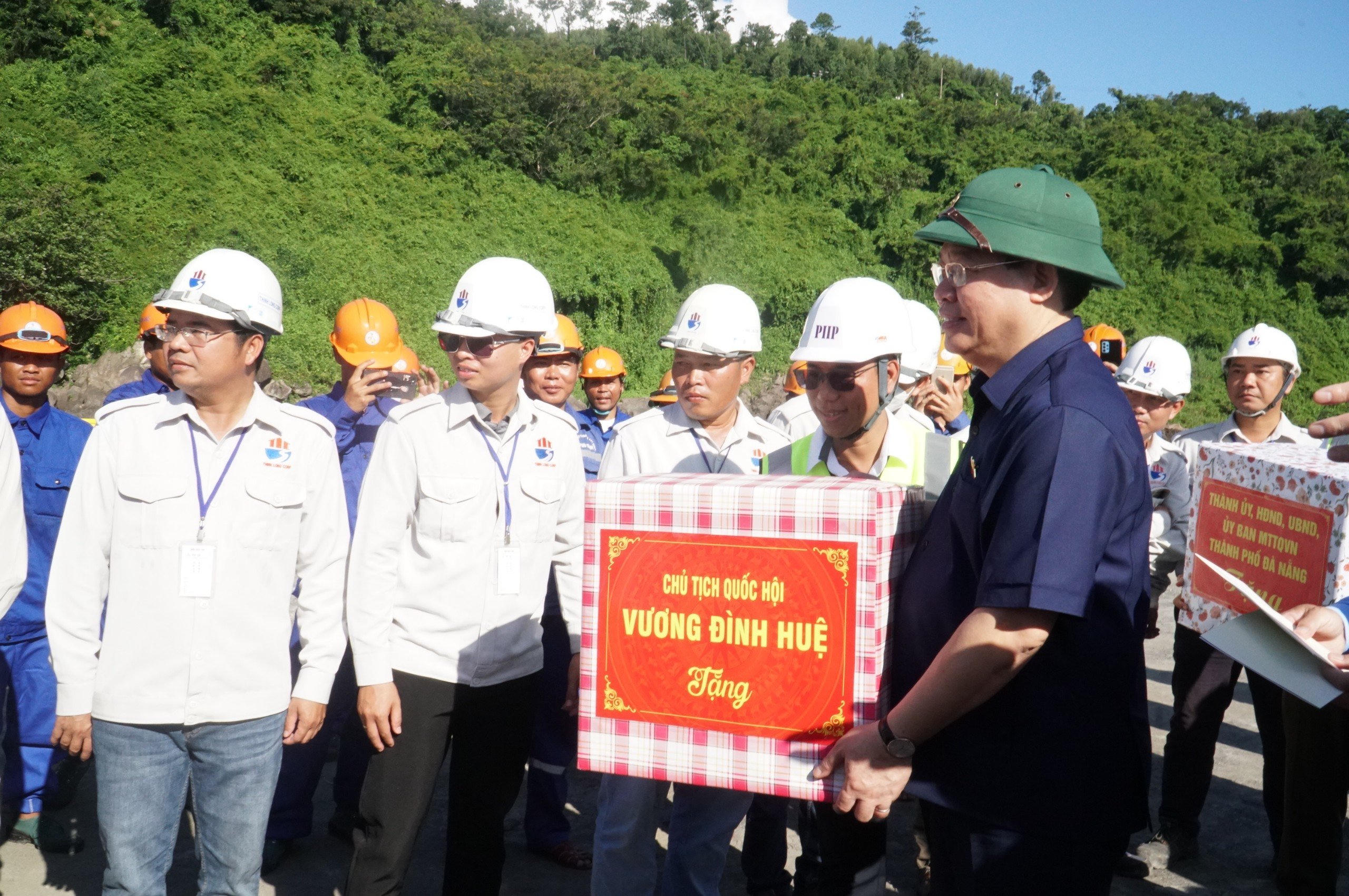 Nhân dịp này, Chủ tịch Quốc hội Vương Đình Huệ cũng đã tặng quà động viên các công nhân, người lao động đang tham gia thi công tại công trình quan trọng này.