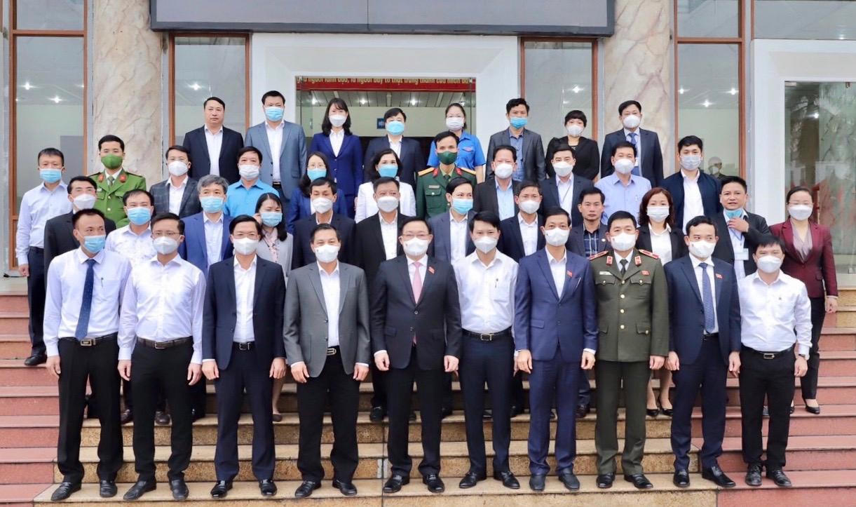 Chủ tịch Quốc hội Vương Đình Huệ cùng cử tri quận Hải An, TP Hải Phòng. |
