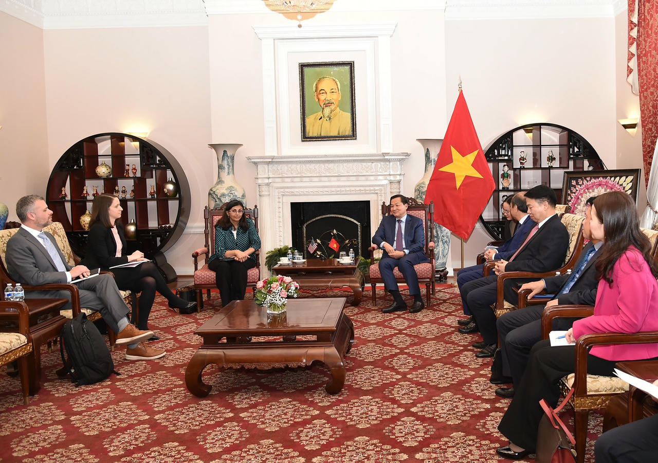 Tại cuộc gặp Phó Giám đốc Cơ quan phát triển tài chính quốc tế Hoa Kỳ (DFC) Nisha Biswal, Phó Thủ tướng Lê Minh Khái đánh giá các lĩnh vực ưu tiên của Cơ quan Tài chính phát triển quốc tế Hoa Kỳ phù hợp với các ưu tiên phát triển của Việt Nam.
