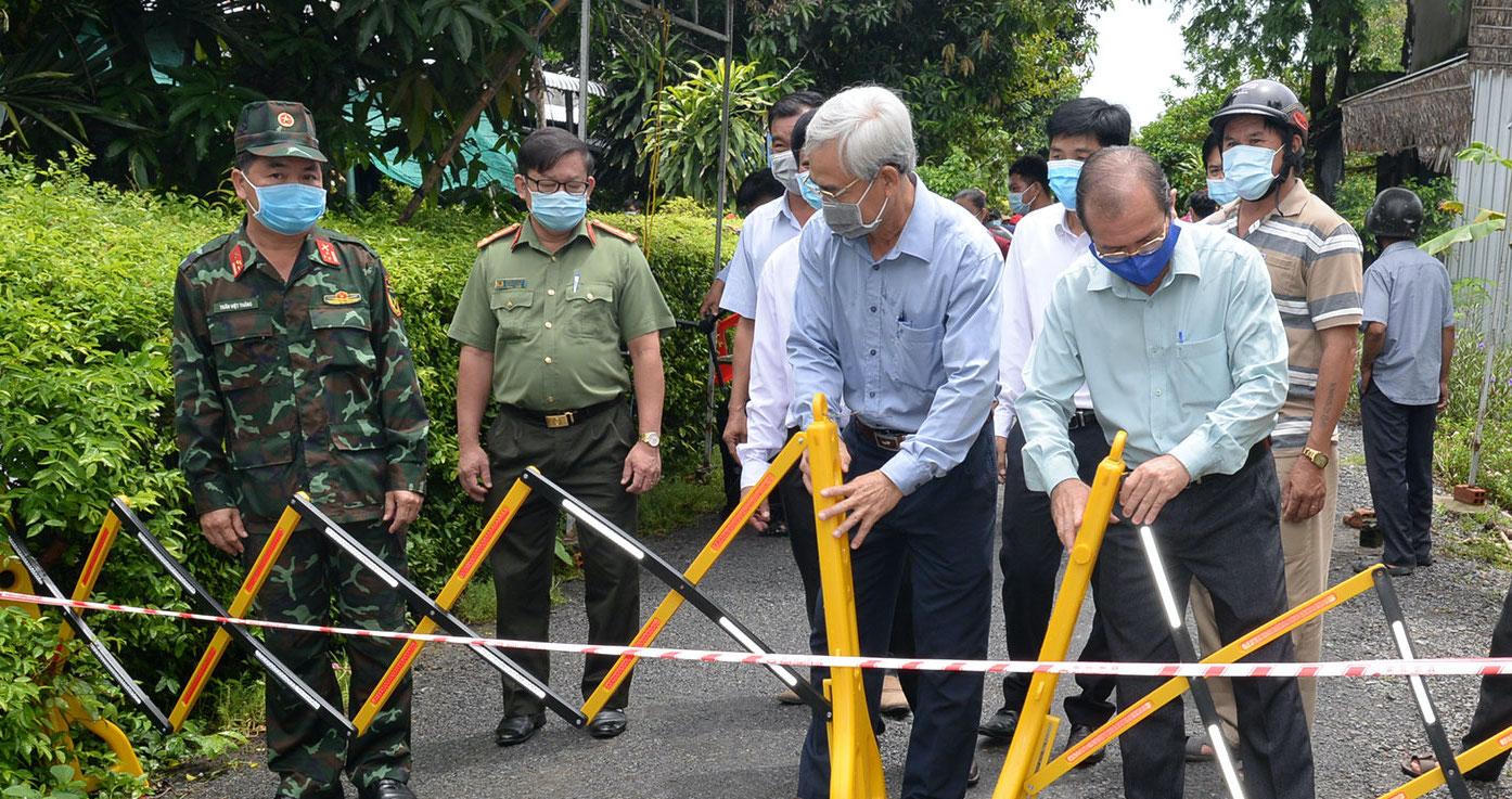 Lãnh đạo TX Cai Lậy gỡ phong tỏa xã Mỹ Hạnh Đông. Ảnh: Ấp Bắc |