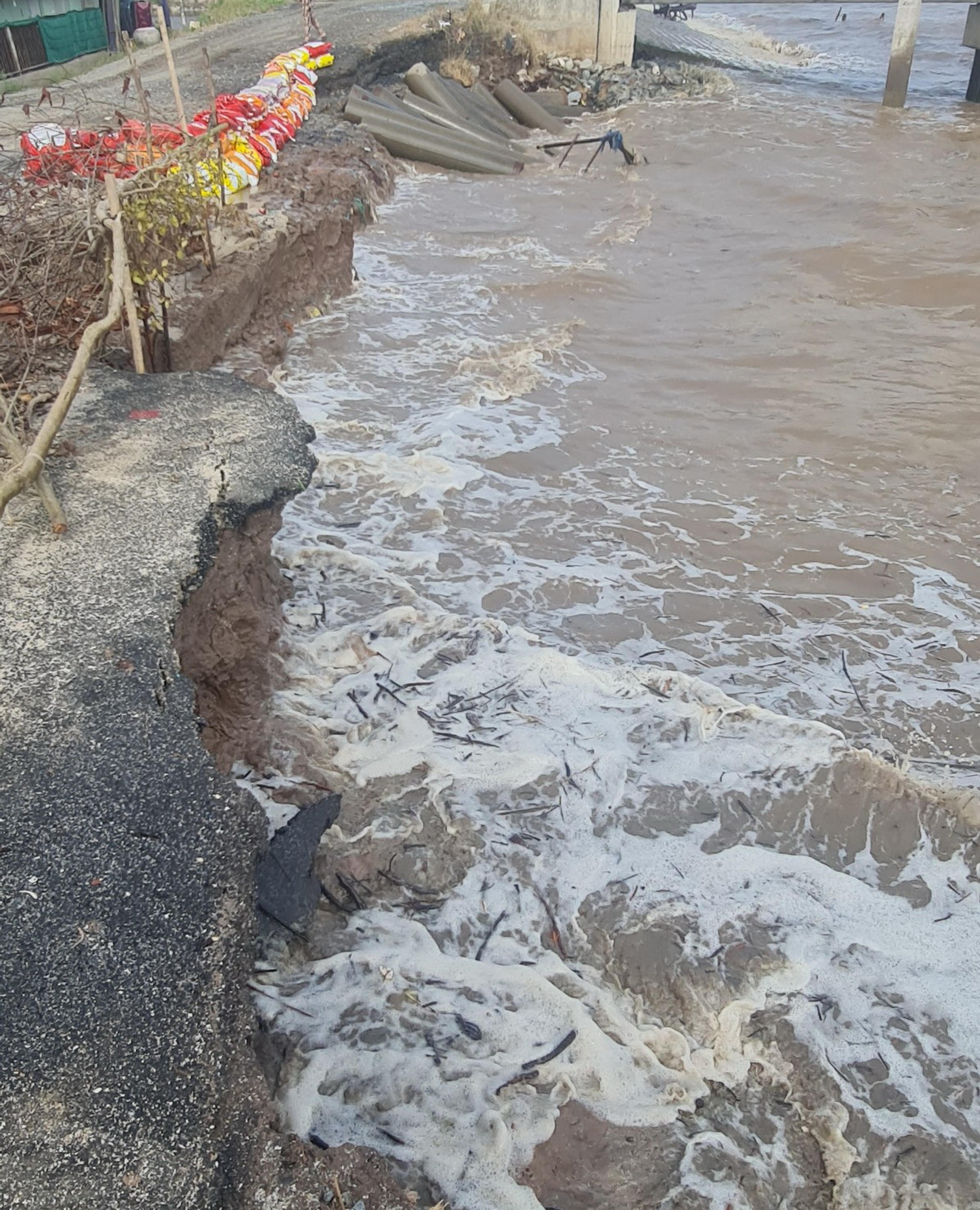 Cũng trong ngày 23/2, lực lượng chức năng đã dùng các bao cát gia cố nước biển tràn vào khu vực nhà dân và khu vực sản xuất nông nghiệp bên trong đê; xe cơ giới cũng đã được huy động đến hỗ trợ gia cố trước mắt đoạn đê bị sạt này, chờ các giải pháp khắc phục tiếp theo…