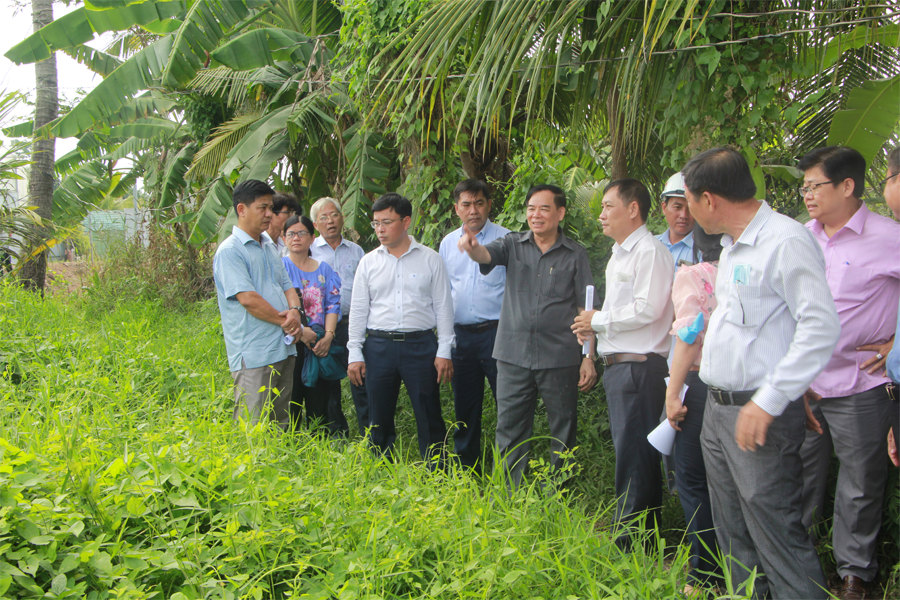 Đoàn công tác khảo sát dự án tại khu vực xã Bình Phú, thành phố Bến Tre. (Ảnh: Trương Hùng). |
