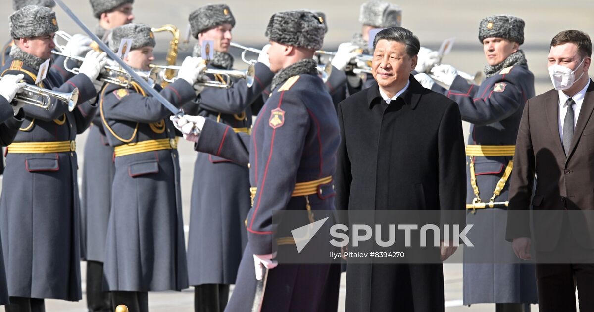 Lễ đón Chủ tịch Trung Quốc Tập Cận Bình tại sân bay quốc tế Vnukovo, Moscow, Nga. (Nguồn: Sputnik) |