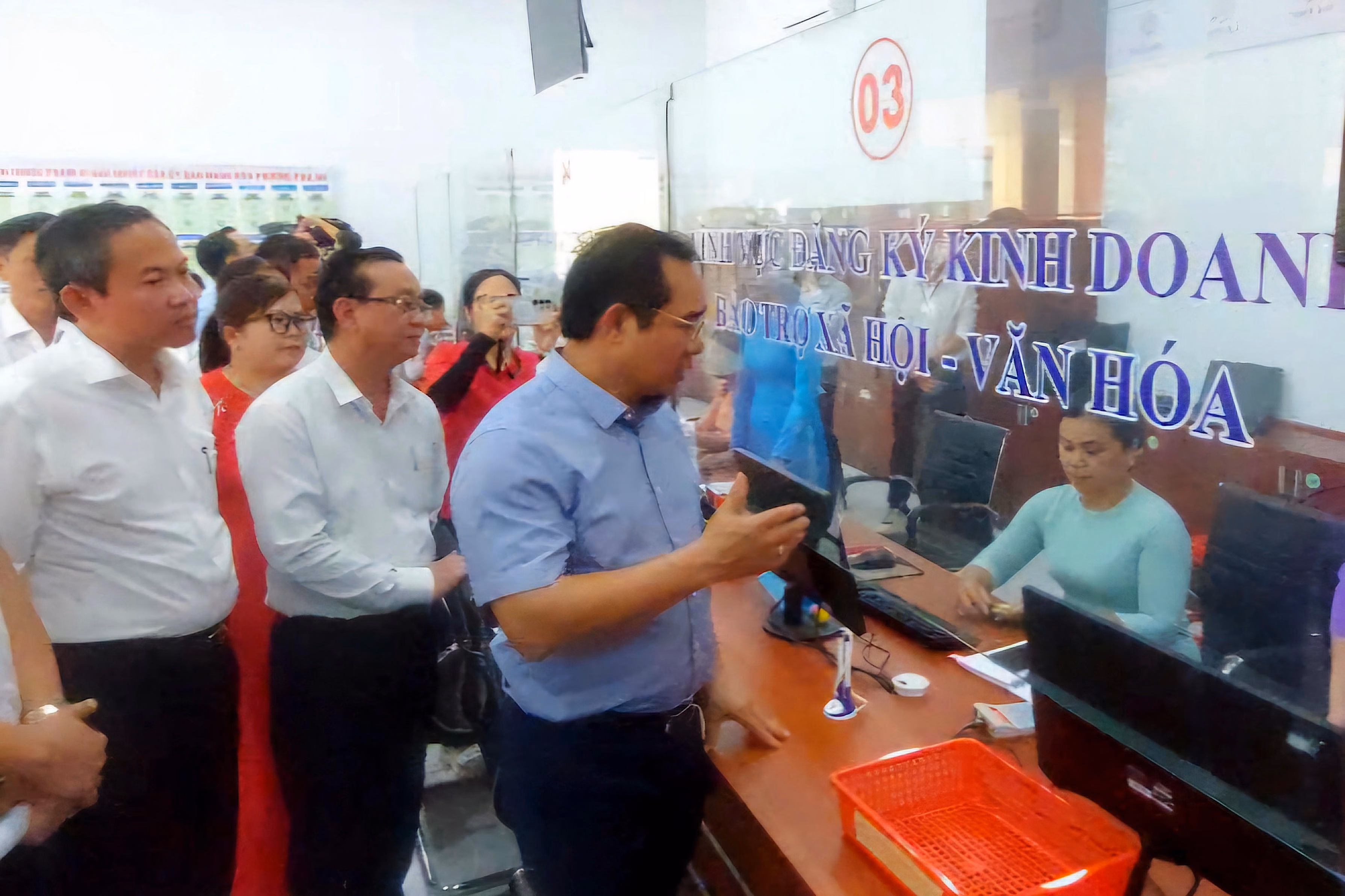 (PLVN) - Chiều 9/7, tại Trung tâm phục vụ hành chính công (TTPVHCC) phường Phú An, Chủ tịch UBND TP Hồ Chí Minh - Nguyễn Văn Được; Phó Chủ tịch UBND TP Hồ Chí Minh - Bùi Minh Thạnh cùng đại diện sở, ban, ngành khảo sát tình hình hoạt động bộ máy chính quyền cấp xã mới sau sáp nhập.