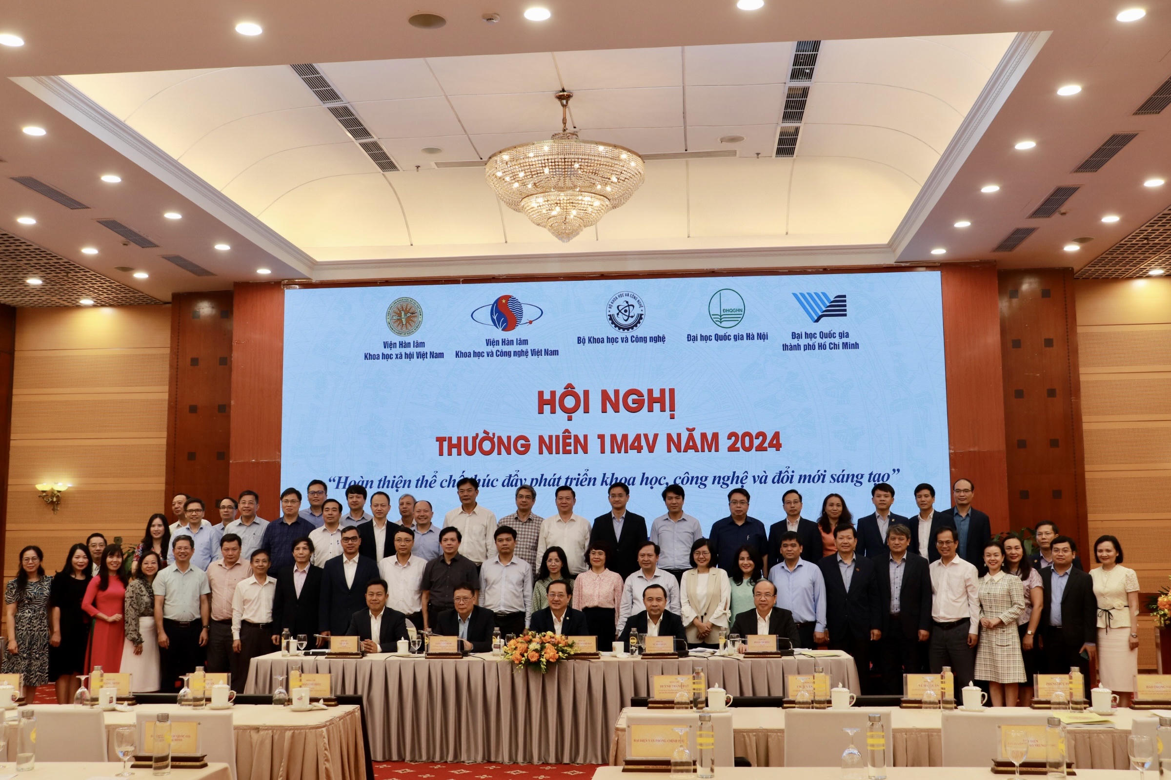 (PLVN) -Ngày 14/11, Viện Hàn lâm Khoa học xã hội Việt Nam, Bộ Khoa học & Công nghệ phối hợp với Đại học Quốc gia Hà Nội, Đại học Quốc gia Thành phố Hồ Chí Minh, Viện Hàn lâm Khoa học & Công nghệ Việt Nam tổ chức Hội nghị thường niên 1M4W năm 2024 với chủ đề “Hoàn thiện thể chế thúc đẩy phát triển khoa học, công nghệ và đổi mới sáng tạo”.