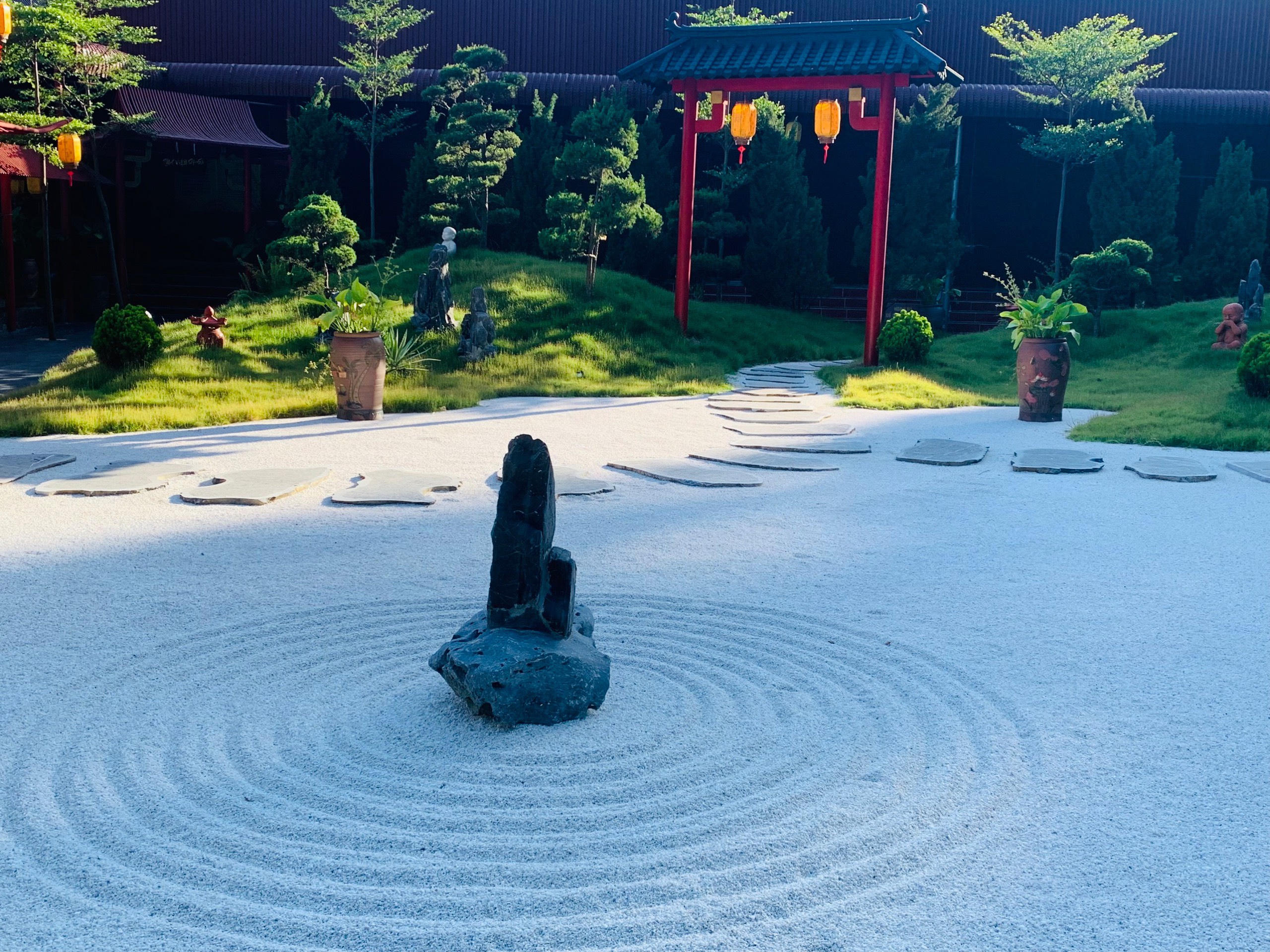Những cánh cổng Tam Quan trong vườn thiền được thiết kế kiểu Nhật, làm cho khung cảnh thêm thiền vị nên thơ.