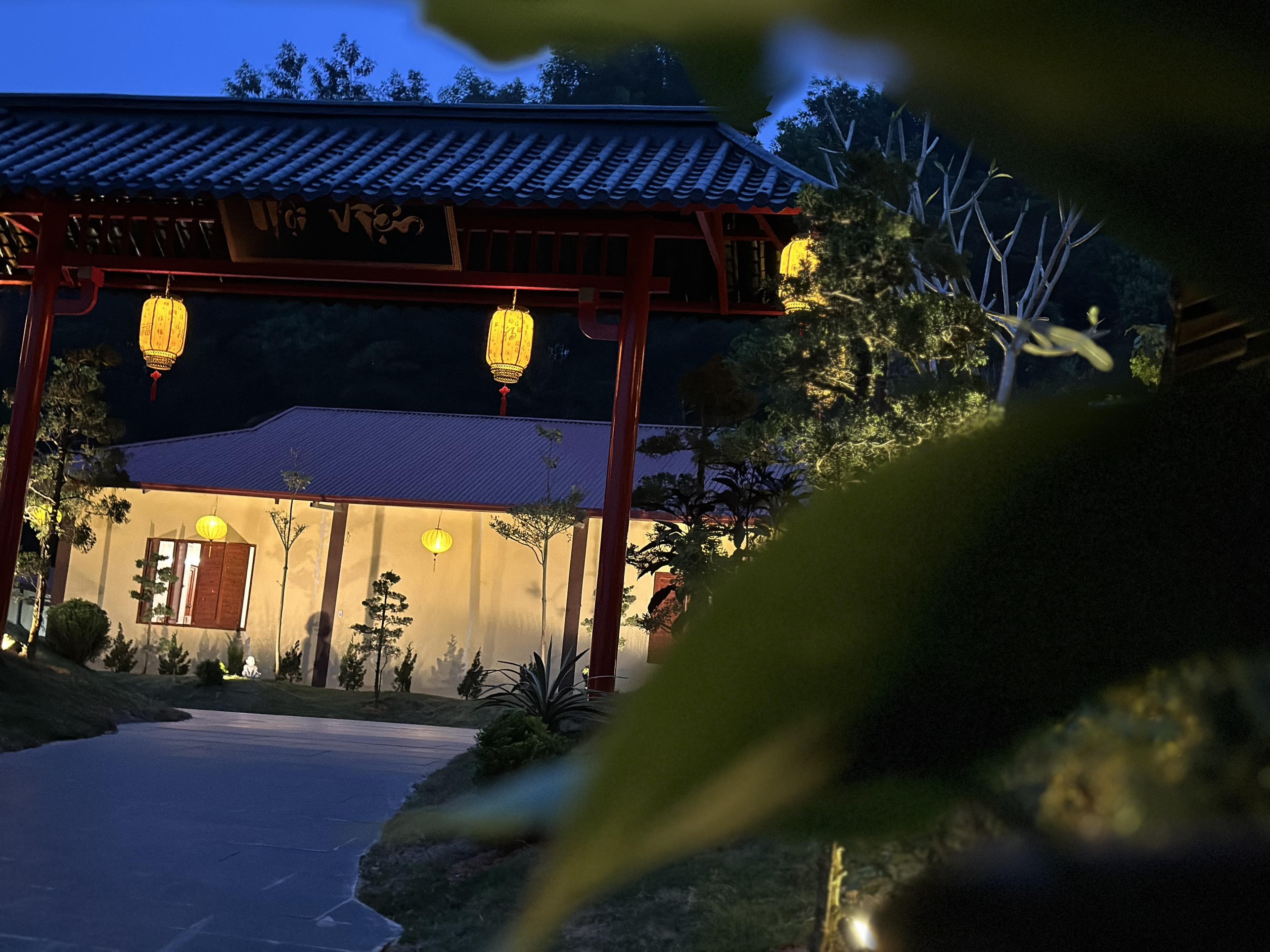 Con dốc dẫn vào khu nội viện với hàng rào thiết kế phong cách Nhật làm cho ta cảm giác nhẹ nhàng quên hết cảnh trần duyên mà tìm lại được chính mình.