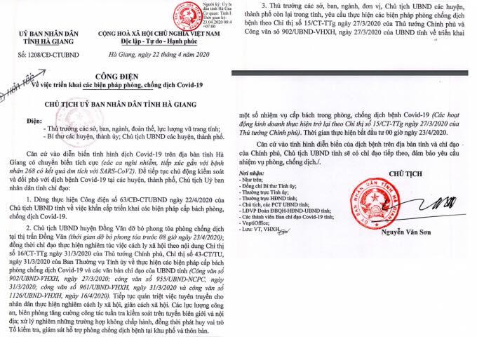 Đồng thời, Chủ tịch hà Giang chỉ đạo tiếp tục quán triệt tuyên truyền cho nhân dân thực hiện nghiêm cách ly xã hội, giãn cách xã hội. Các lực lượng công an, biên phòng tăng cường công tác tuần tra kiểm soát trên tuyến biên giới và nội địa, xử lý nghiêm những trường hợp không chấp hành...