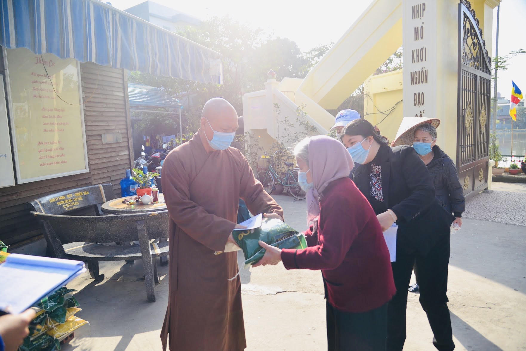Chính vì vậy, nhà chùa đã thống nhất phương án tặng quà tết riêng lẻ cho người nghèo, tặng quà tại gia đình, phát giấy mời theo giờ để bà con tới chùa và tới UBND phường nhận quà, không tập chung đông người tránh lây lan dịch bệnh.