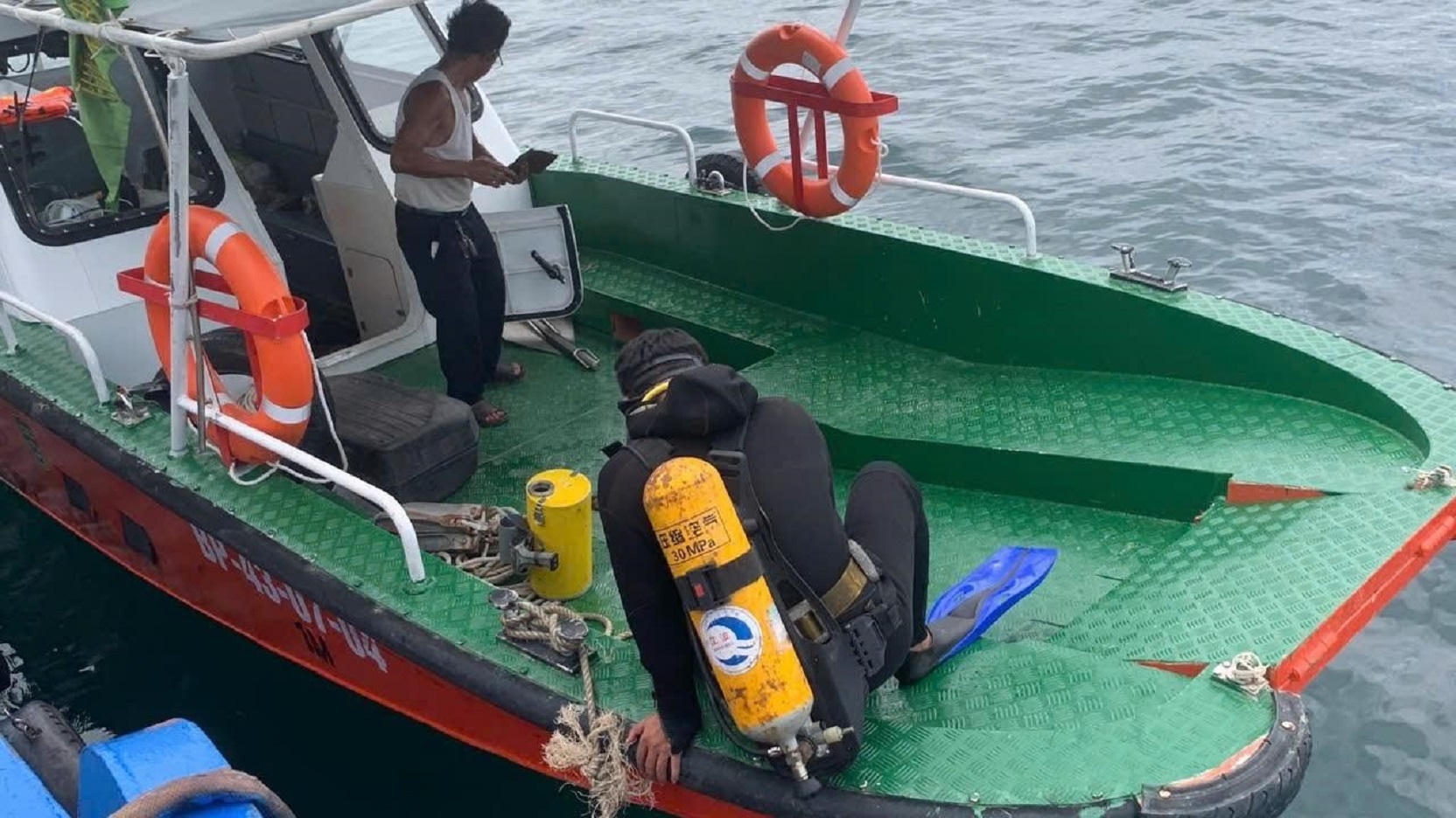 Thợ lặn lặn kiểm tra xem 18.000 lít dầu DO có trong khoang tàu hàng An Bình Phát 68 hay không nhưng không phát hiện được gì. (Ảnh: HX) |