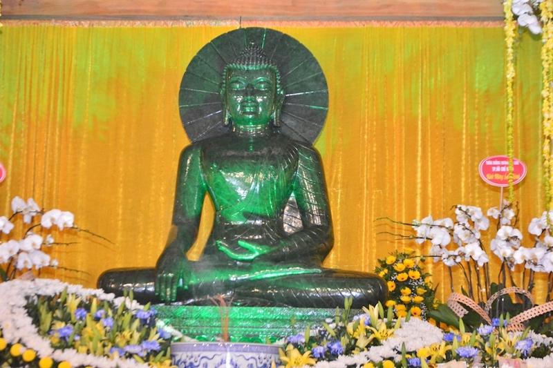 Pho tượng Phật ngọc nguyên khối nặng 3,8 tấn đặt tại chùa Quỳnh Lâm. |