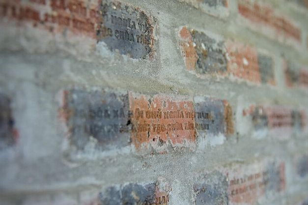 Đặc sắc nữa là mỗi viên gạch xây chùa đều có hàng chữ in hoa: “Cộng hòa xã hội chủ nghĩa Việt Nam – Phật lịch 2559 khởi tạo chùa Tân Thanh” sẽ là cột mốc văn hóa lưu lại nghìn năm nơi biên cương của Tổ quốc.