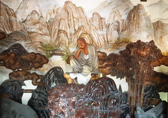 Gian thờ Thập bát La hán được đặt trên bức tranh cảnh mây núi (Ảnh: Báo Dân tộc) |