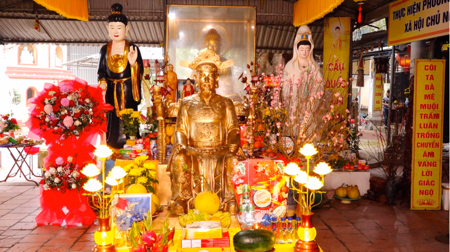 Từ sáng sớm, khuôn viên chùa đã rộn ràng tiếng nói cười. Người dân trong thôn Vân Cầu và các vùng lân cận thành tâm sắm lễ, dâng hương, gửi gắm ước nguyện về một năm mới bình an, mạnh khỏe và thuận lợi. Không gian chùa được trang hoàng trang nghiêm, cờ phướn rực rỡ, hương trầm lan tỏa, tạo nên bầu không khí linh thiêng, ấm cúng.