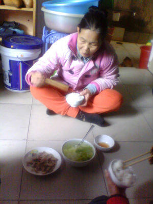 Chị Lý kể thêm: “Cơm ở đây vừa cứng vừa khô. Thực đơn gồm rau luộc và đĩa thịt mỡ nhiều hơn, lạc rang như ướp muối ăn dè làm mấy bữa. Mỗi người chỉ được ăn cầm chừng. Có đêm bác Sinh đói tụt huyết áp phải đi cấp cứu”.