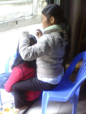 Mấy ngày dài đằng đẵng bám lấy cái trung tâm quái dị này tôi chỉ ăn cơm bụi. Đêm chờ việc buồn thê thiết, cả thảy tám phận người đợi việc, tám cô cháu ngồi quây quần quanh chiếc chiếu hoa sờn mốc. Điện tắt từ chập tối, chỉ còn thứ ánh sáng hiu hắt phát ra từ chiếc đèn điện thoại.
