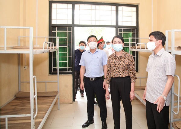 Kiểm tra hệ thống cơ sở vật chất tại Trung tâm Giáo dục quốc phòng và an ninh (Trường Đại học Sư phạm Hà Nội 2), Bí thư Tỉnh ủy Hoàng Thị Thúy Lan cho rằng đây là địa điểm phù hợp để thành lập khu cách ly tập trung quy mô lớn.