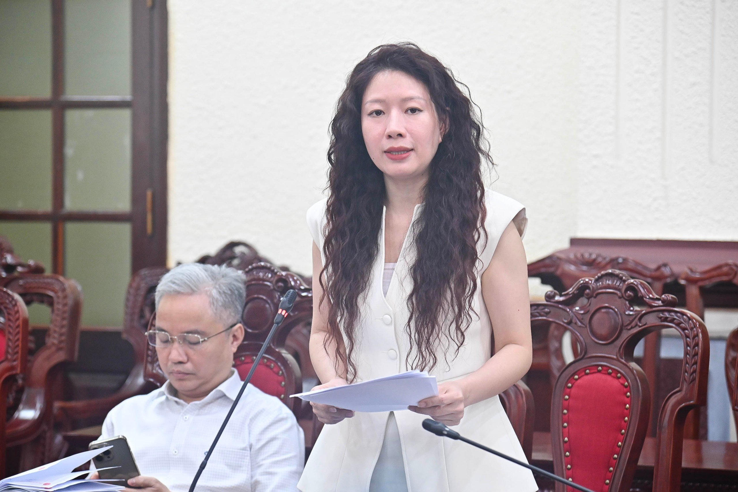 Phó Chánh Văn phòng Bộ Tư pháp Lê Thu Anh báo cáo tại buổi làm việc.