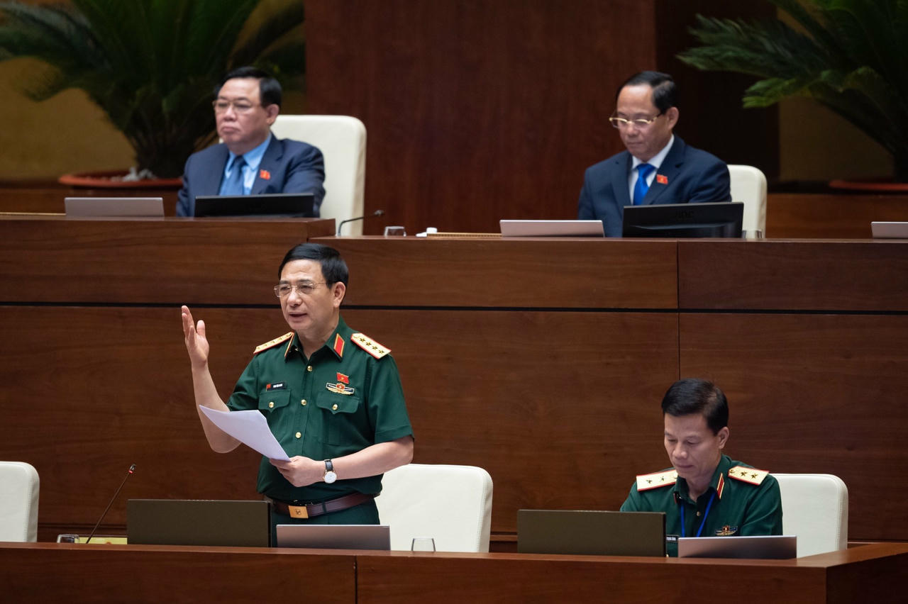 Đại tướng Phan Văn Giang, Ủy viên Bộ Chính trị, Bộ trưởng Bộ Quốc phòng tiếp thu, giải trình ý kiến đại biểu QH. |