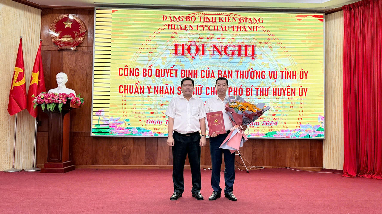 (PLVN) - Ngày 9/12, Huyện ủy Châu Thành (tỉnh Kiên Giang) tổ chức công bố quyết định của Ban Thường vụ Tỉnh ủy, chuẩn y nhân sự giữ chức Phó Bí thư Huyện ủy Châu Thành.