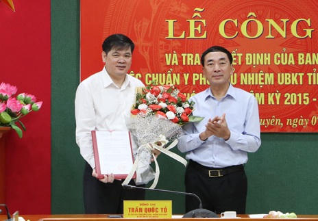 Thừa ủy quyền của Ban Bí thư Trung ương Đảng, Ủy viên Ban Chấp hành Trung ương Đảng, Bí thư Tỉnh ủy, Trưởng Đoàn đại biểu Quốc hội tỉnh Thái Nguyên Trần Quốc Tỏ mới đây đã trao quyết định của Ban Bí thư Trung ương Đảng chuẩn y chức vụ Ủy viên, Phó Chủ nhiệm Ủy ban Kiểm tra Tỉnh ủy Thái Nguyên khóa XIX, nhiệm kỳ 2015-2020 cho Phó Giám đốc Sở Tài nguyên và Môi trường tỉnh Thái Nguyên Phan Thanh Hà.