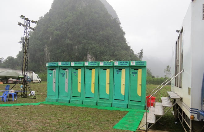 Một con đường dài hơn 3km nối từ đường liên xã Tân Hóa vào phim trường cũng đã được hoàn tất từ trước đó nhiều ngày, khu vực hậu cần của đoàn đóng bên đường này được dựng một hệ thống lán trại tạm nhưng rất công phu và đồ sộ gồm đầy đủ các bộ phận sinh hoạt cho đoàn như nhà ăn, bếp nấu rộng rãi, nhà vệ sinh cá nhân cùng hệ thống hàng trăm xe chứa trang thiết bị, dọn dẹp vệ sinh trường quay rất đầy đủ.