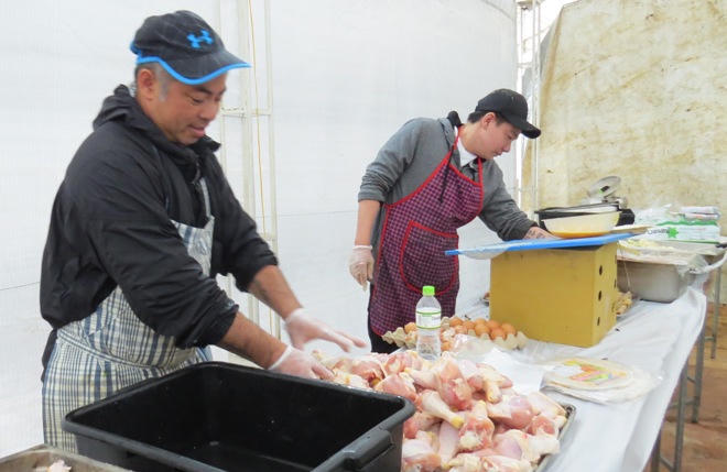 Buổi trưa, đoàn làm phim sẽ mời cơm và giao lưu với đoàn công tác của tỉnh Quảng Bình ở khu vực hậu cần trường quay.