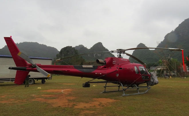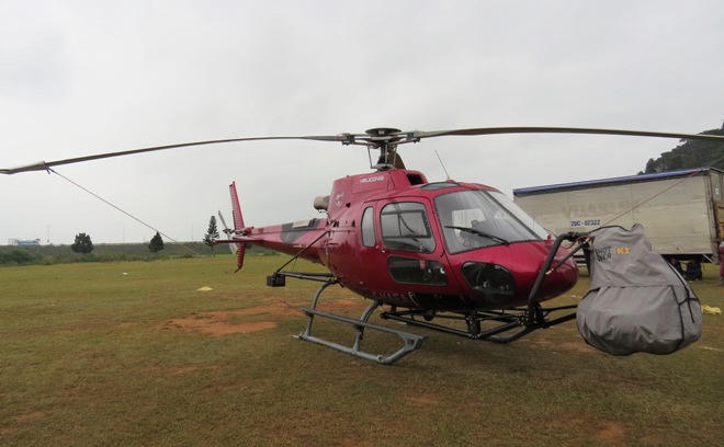 Một chiếc trực thăng được trang bị chuyên dụng điện ảnh phục vụ đoàn phim được nhập nguyên chiếc về Việt Nam đã từ Hà Nội di chuyển vào khu vực nơi diễn ra các cảnh quay của King Kong.