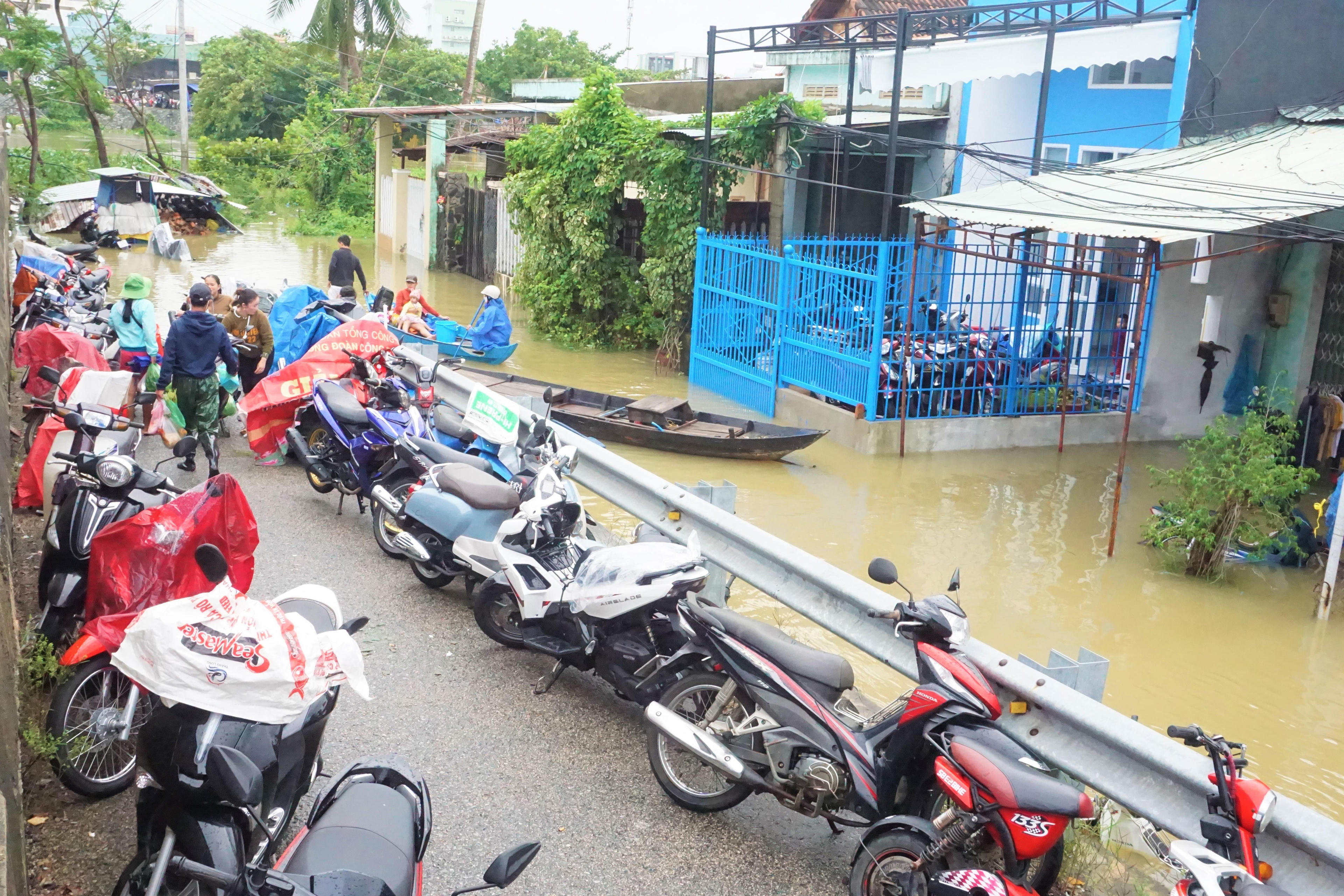 Nhiều xe máy và tài sản của người dân không kịp di dời nên đã bị ngập trong nước lũ.
