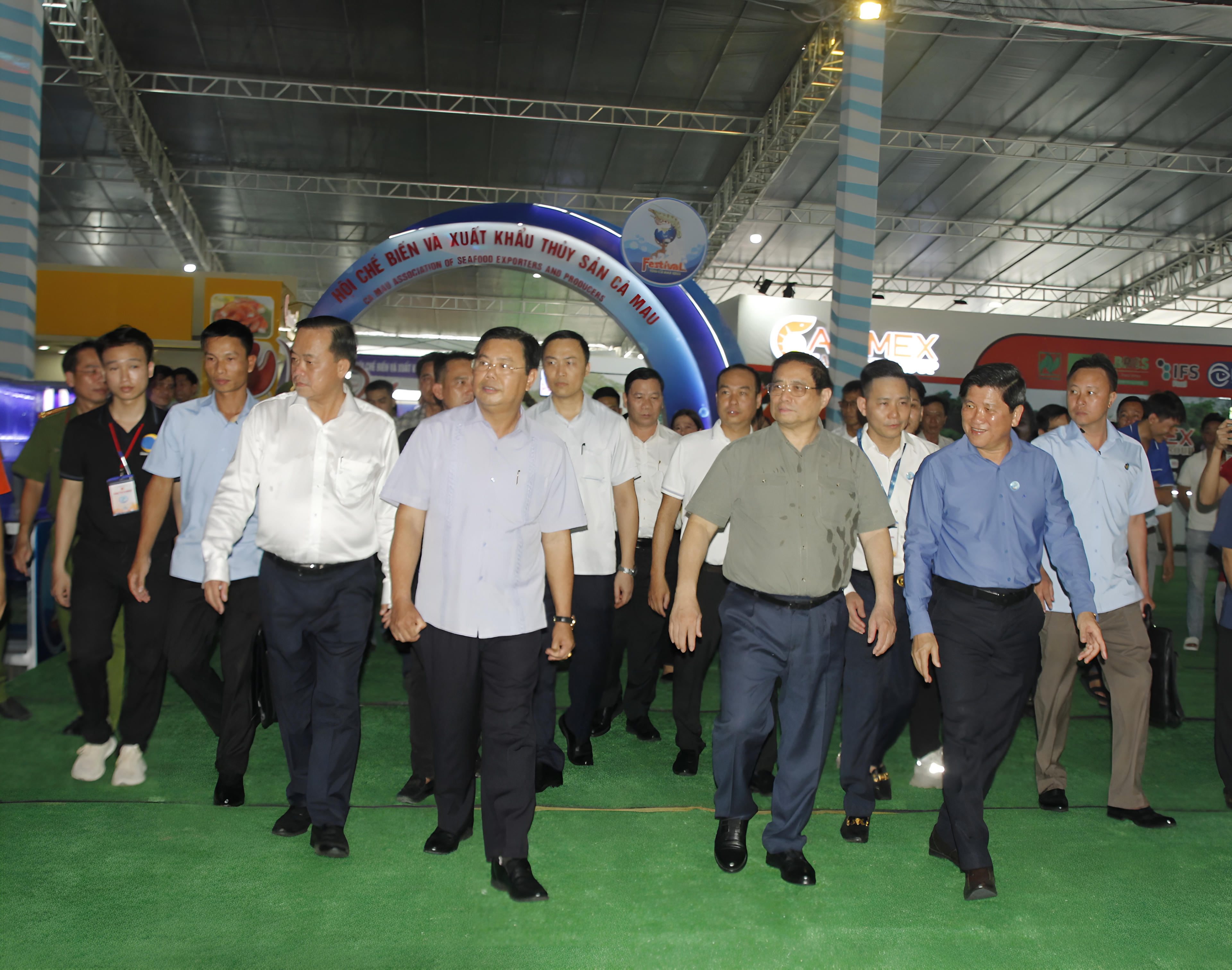 Thủ tướng Chính phủ Phạm Minh Chính kết thúc chuyến tham quan các gian hàng được trưng bày tại Festival Tôm Cà Mau 2023. |