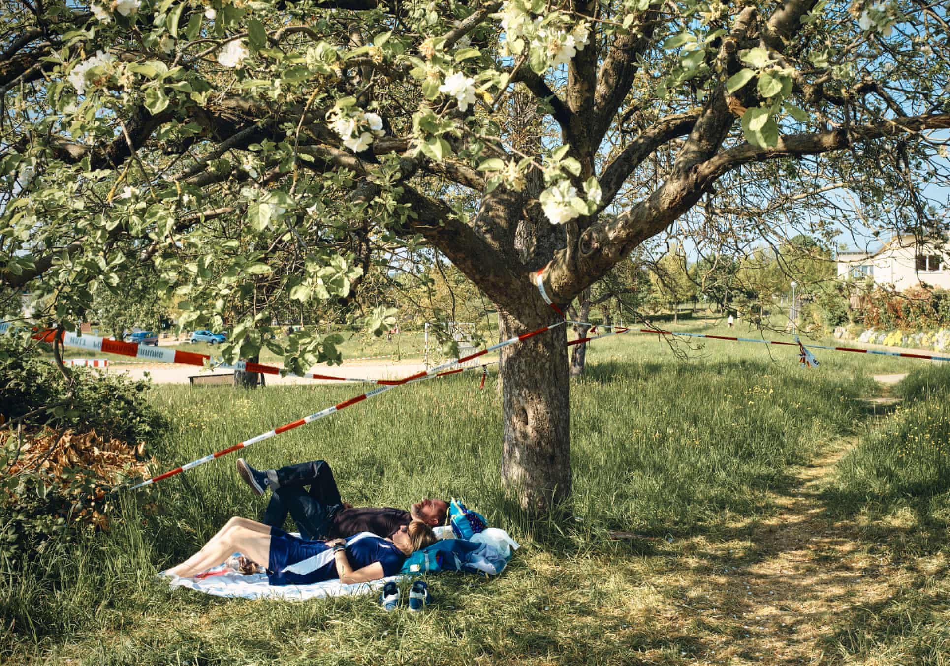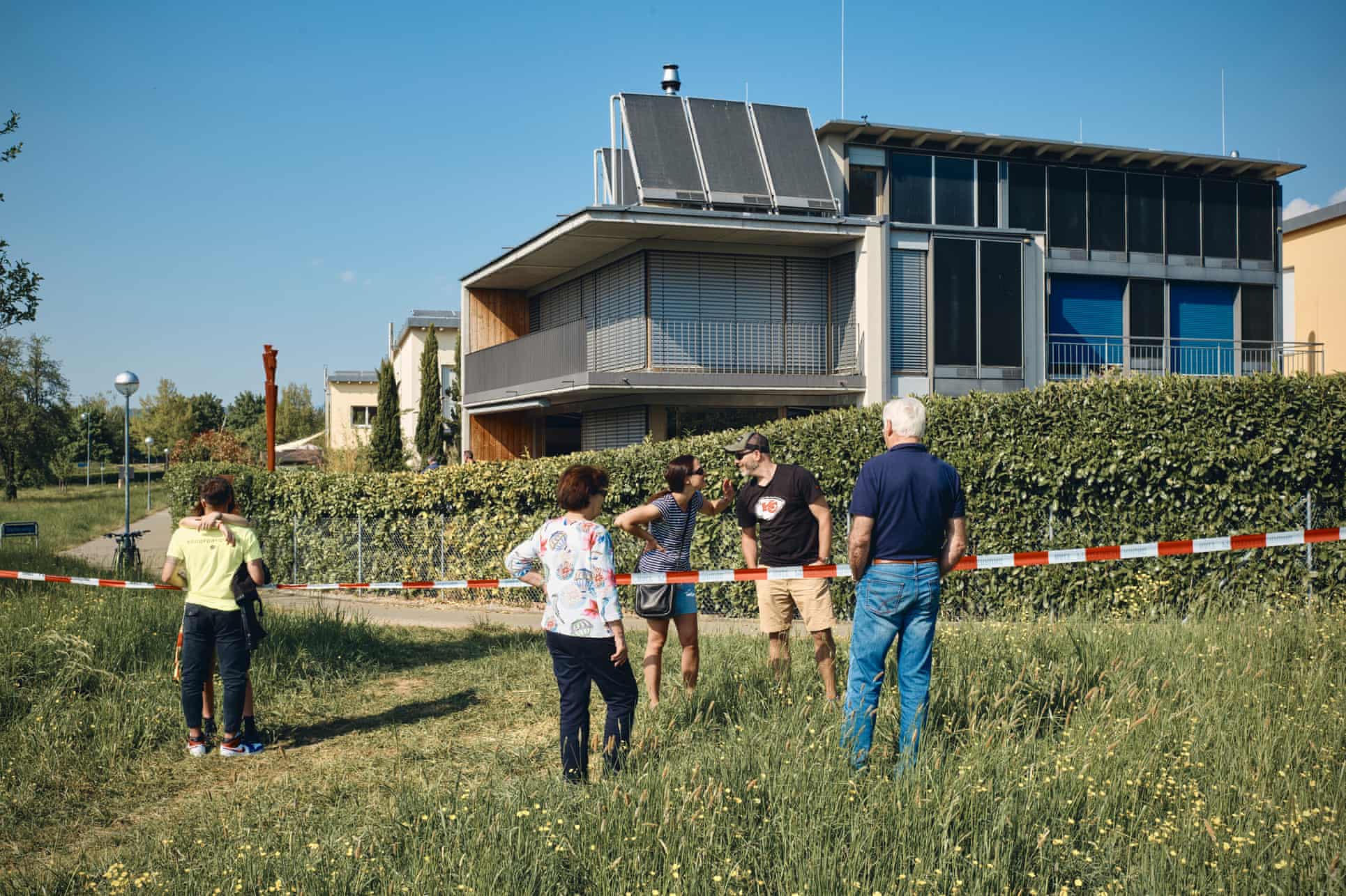 Bất chấp tất cả, tâm trạng của họ vẫn rất tốt trong ngày gặp mặt này. Dọc theo hàng rào, một số nhóm người đã sắp xếp để gặp nhau: những gia đình, bạn bè, những người yêu nhau bị ly tán. Một nhóm thanh niên trẻ tuổi đã dựng ghế cắm trại ở hai bên hàng rào. Ba trong số họ đều đến từ Lörrach ở Đức, cộng đồng láng giềng của Riehen. Một người trong đó thì đang học tại Basel. Đây là nơi duy nhất họ có thể gặp và uống bia cùng nhau.