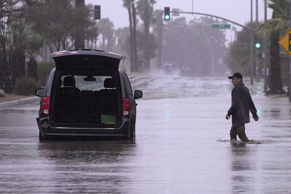 Ngày 20/8 (giờ địa phương), cơn bão nhiệt đới Hilary đổ bộ vào bang California của Mỹ, gây lũ lụt ở phía Đông và phía Tây thành phố Los Angeles, khiến hàng trăm chuyến bay bị huỷ bỏ, nhiều trường học phải đóng cửa. Ảnh: AP.