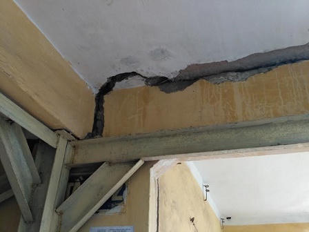 Bác Hằng người sống tại khu nhà nói thêm: “Hôm nọ bão đi qua cả tòa nhà bị rung chuyển lắc lư, nhà tôi ở trên tầng 5 mà mấy mẹ con không tài nào chợp mắt được”. Theo quan sát của phóng viên, nhiều vết nứt gãy dài xuất hiện liên tiếp trên các tầng 4 và tầng 5 của tòa nhà, có vết dài đến 4 mét. Những hộ dân ở đây cho biết họ khắc phục bằng cách quét sơn ve che đi vết nứt nhưng chỉ được một thời gian ngắn là những vết nứt này lại hiện ra không thể nào che được.