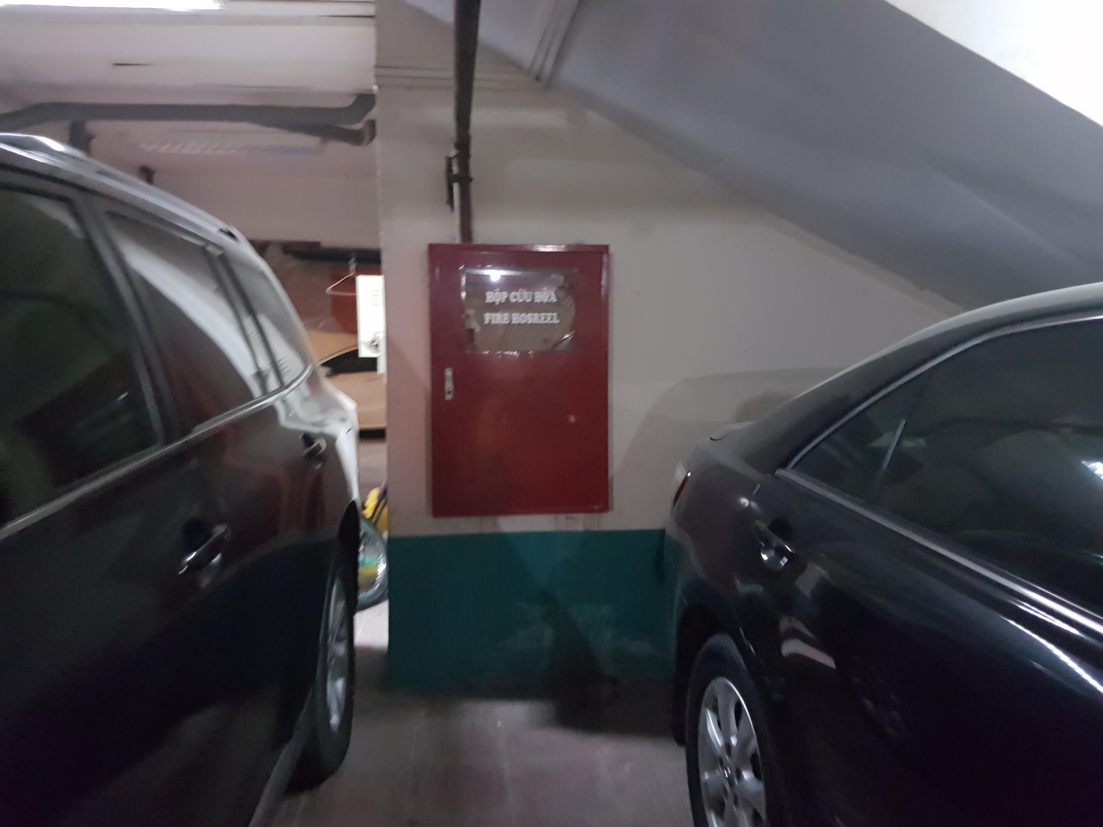 | Cả tầng hầm với hàng chục chiếc xe ô tô và hàng trăm chiếc xe máy nhưng chỉ có 3 bình cứu hỏa "hoen rỉ". |